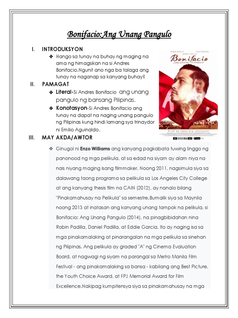 Buod Ng Pelikulang Bonifacio Ang Unang Pangulo