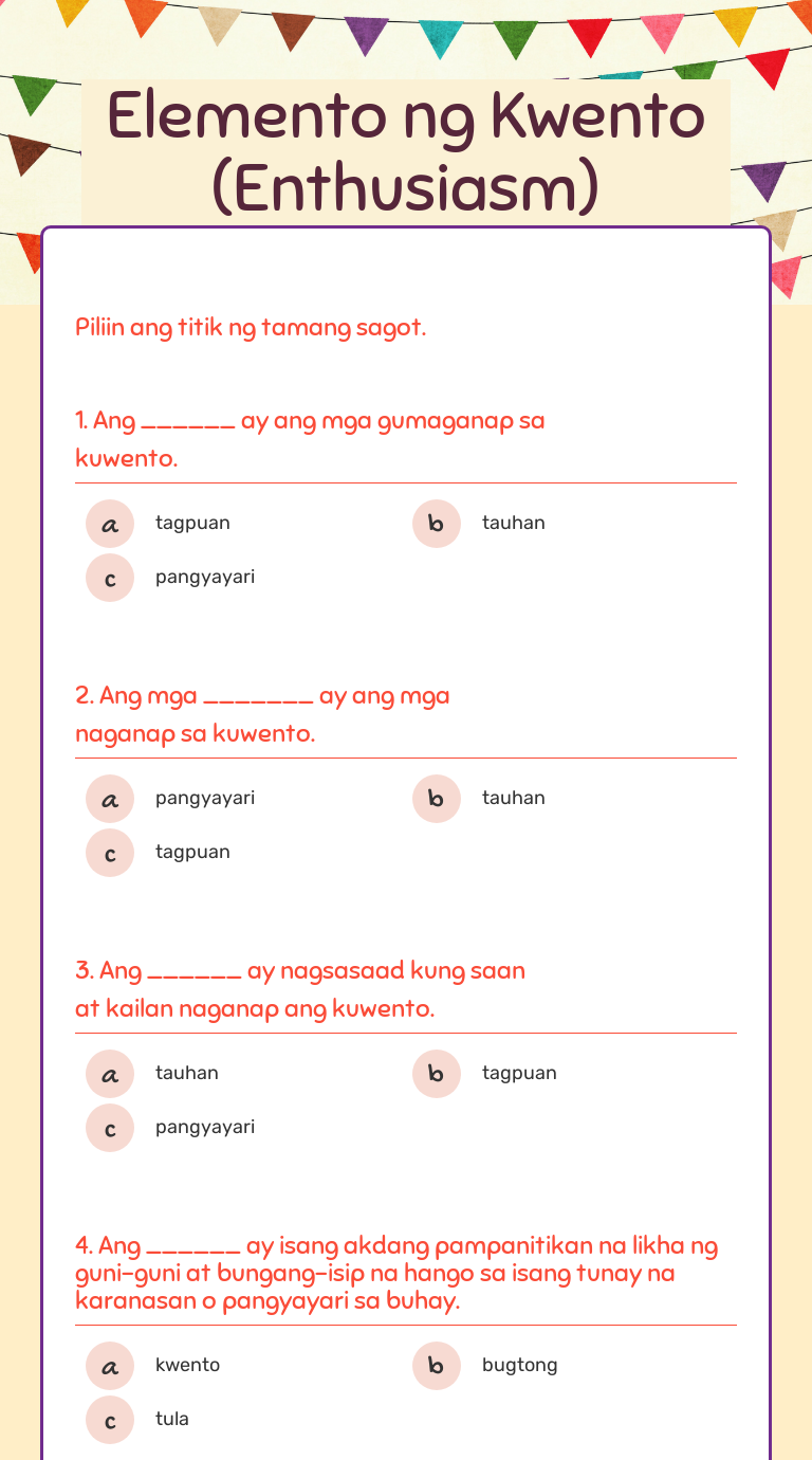 Elemento Ng Kwento Enthusiasm Interactive Worksheet By Rhoda De Juan Wizer Me