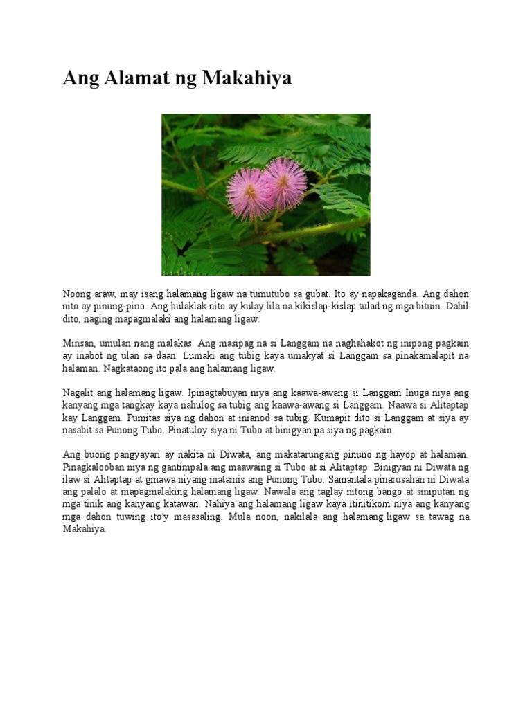 Eto din ay tumatalakay sa mga katutubong kultura kaugalian o kapaligiran. Noong unang panahon sa isang malayong nayon ay may isang dalaga na nagngangalang Rosa na kilala dahil sa natatangi nitong ganda at dahil na rin sa kanyang mapupulang mga pisngi kung kayat pinagkakag- uluhan si Rosa ng mga kalalakihan. Isa sa mga kaaaliwan ninyong basahin ay ang alamat ng makahiya.