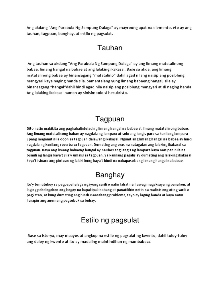 Kritika Ng Ang Parabula Ng Sampung Dalaga Pdf
